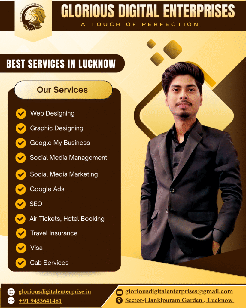 At Glorious Digital Enterprises, we offer expert digital marketing strategies, innovative graphic and web design, and hassle-free travel services — all in one place. Whether you’re growing your brand, building your online presence, or planning your next journey, we deliver smart, reliable, and creative solutions tailored to your needs.